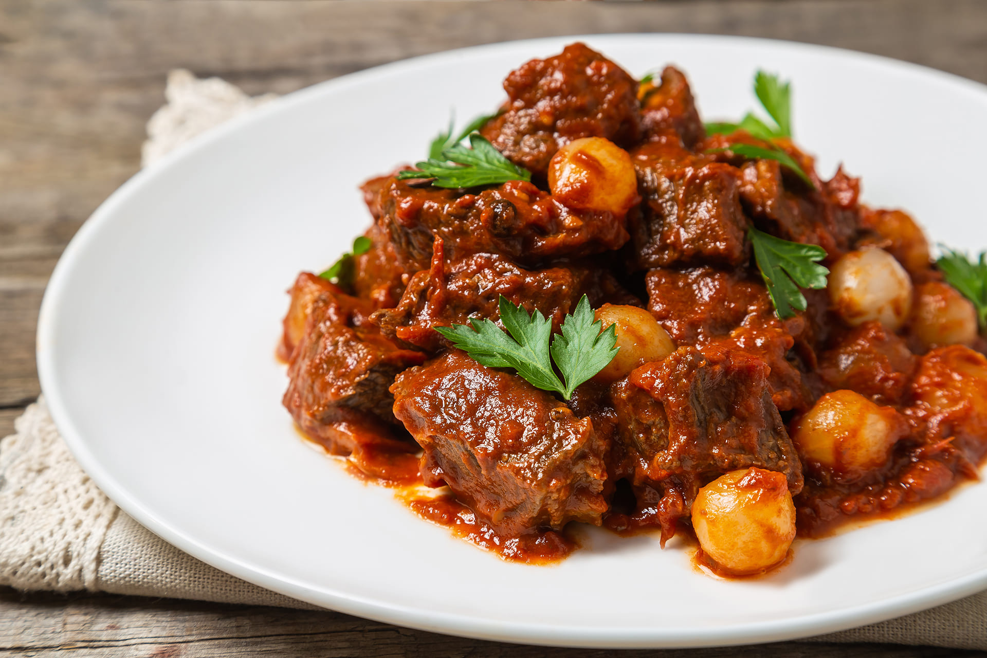 - lo stifado – vitello cucinato con cipollotti e sugo di pomodoro