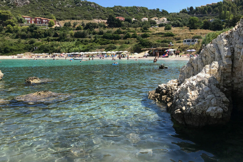 Percorrendo la “Fanari Road”, la strada che collega Lassi al capoluogo Argostoli, e guardando giù verso il mare, si scorge una spiaggia non molto grande.