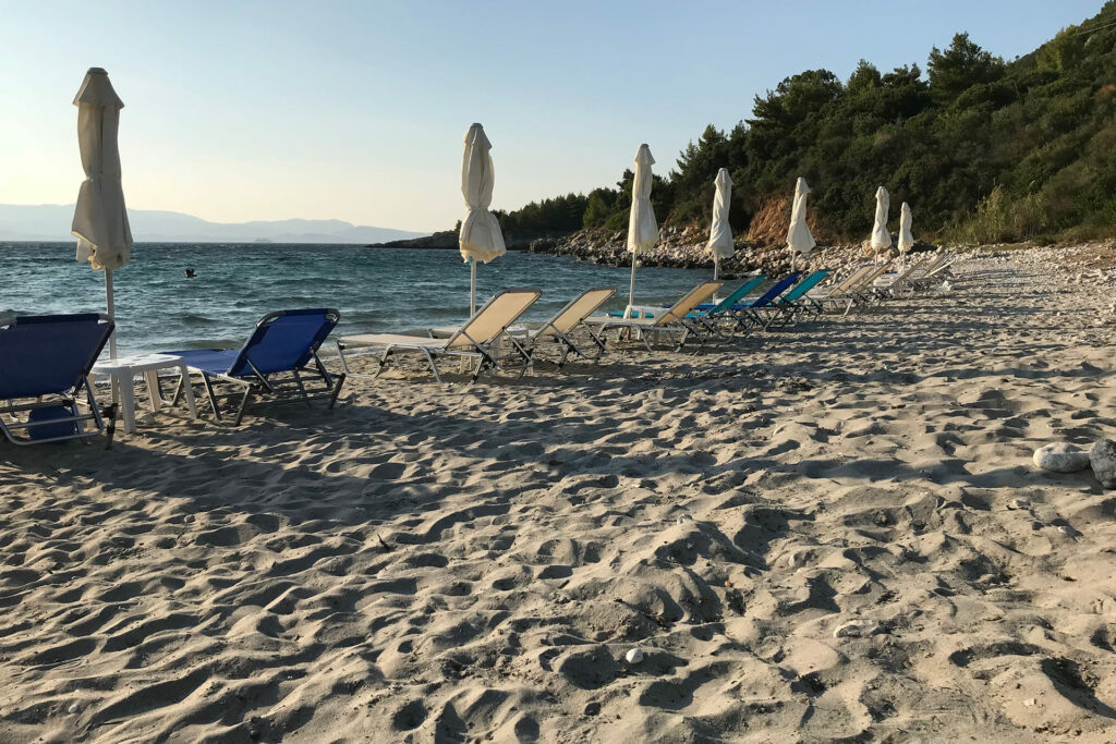 Dialogando piacevolmente con qualche turista inglese, abbiamo capito che Kalamia è la loro spiaggia preferita e abbiamo anche capito il perché del silenzio che regna sulla spiaggia.