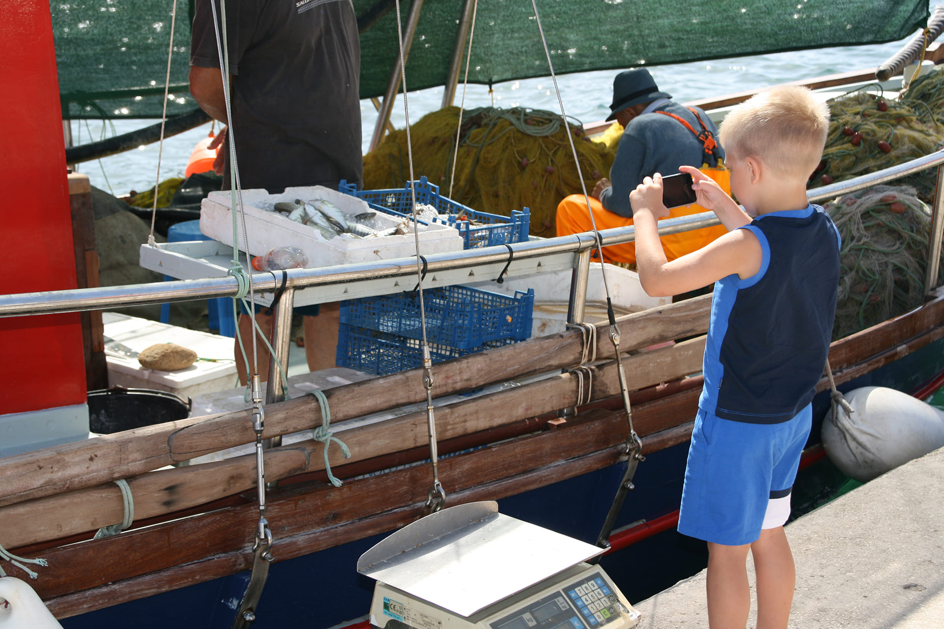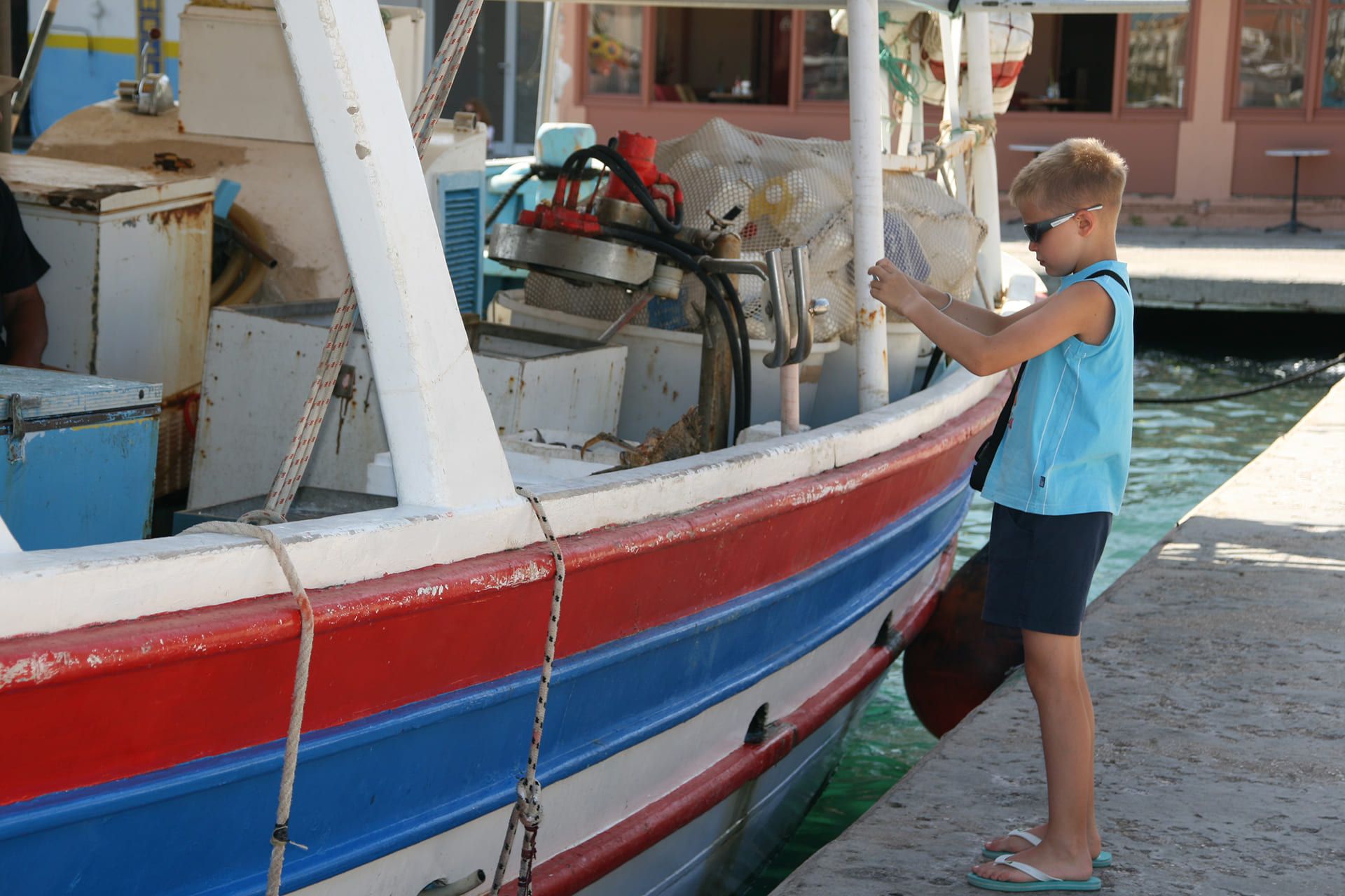 Nella capitale di Cefalonia, chiamata Argostoli, c’è il porto dove al mattino arrivano i pescatori di ritorno dalla pesca notturna.