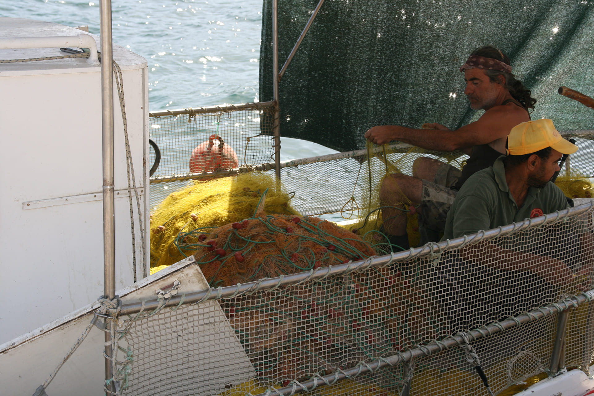 Quando tolgono i pesci dalle reti, ributtano in mare i pesciolini e le tartarughe, che sentono il profumo, arrivano a fare colazione.