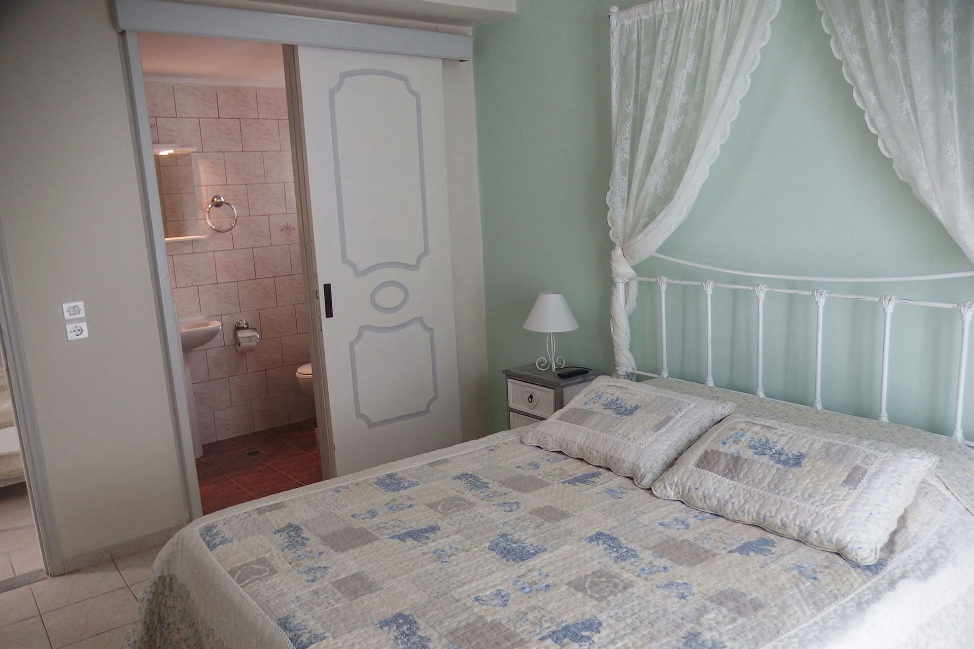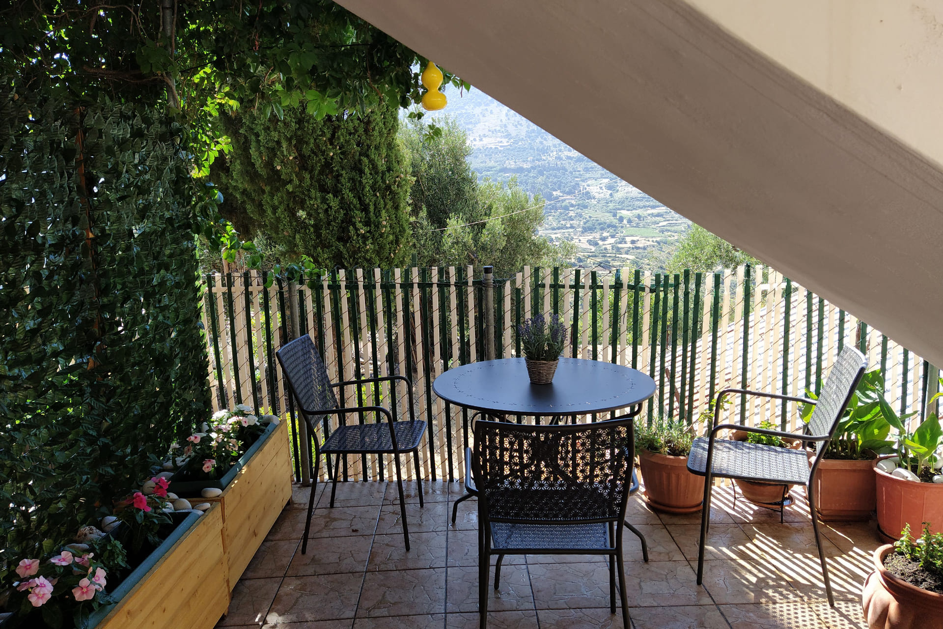 Dagli appartamenti si gode una magnifica vista di verdi montagne che cadono nel blu del meraviglioso Mar Ionio.