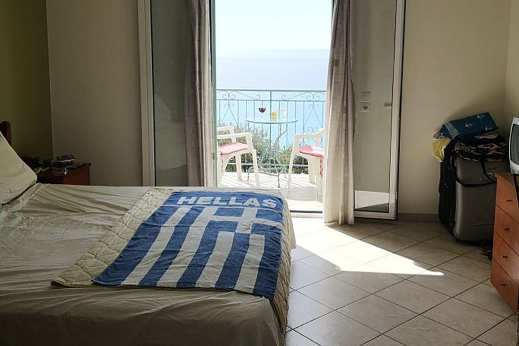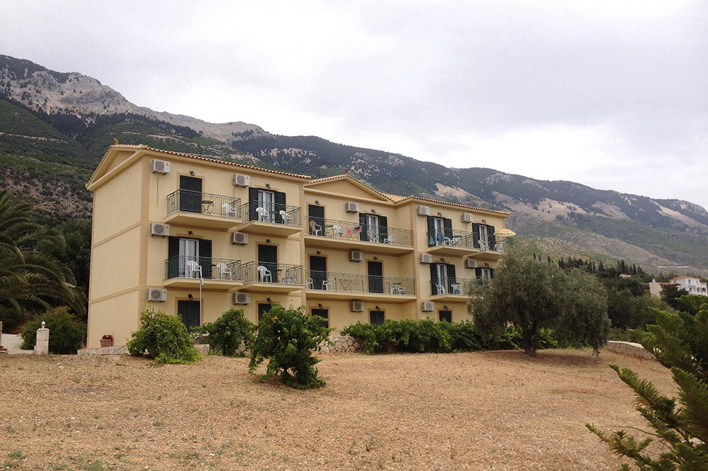 Situato nel villaggio di Lourdata, esso gode di un’ottima posizione, è infatti posto su di una collina con vista sulla spiaggia lunga e sabbiosa di Lourdas dalla quale dista circa 600 metri.