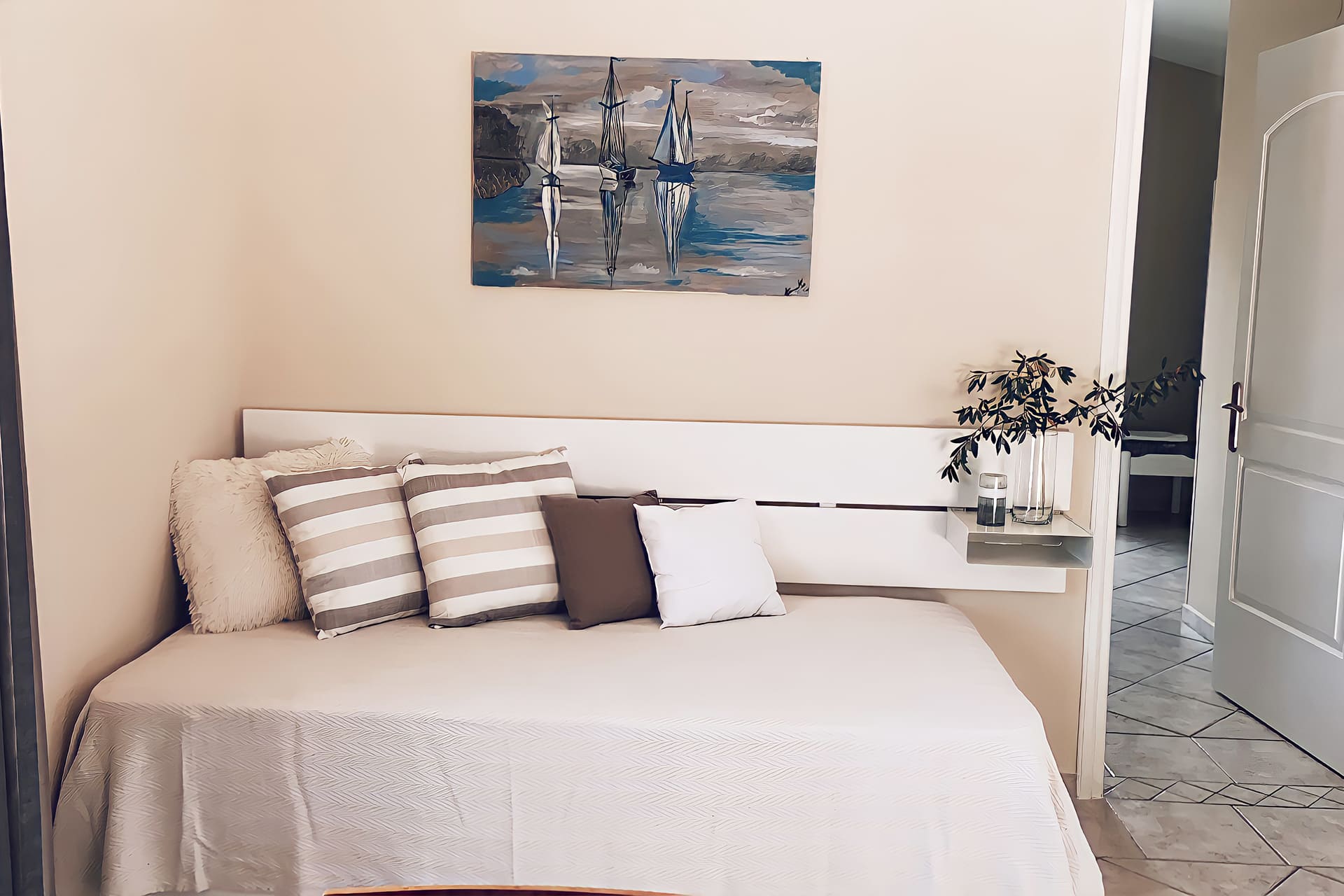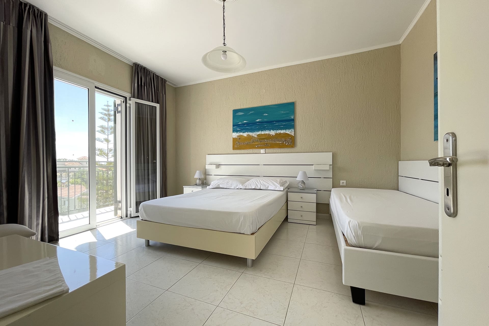Offre varie sistemazioni, tutte vista mare: dallo Studios sino alla Villa che può ospitare 8 persone.