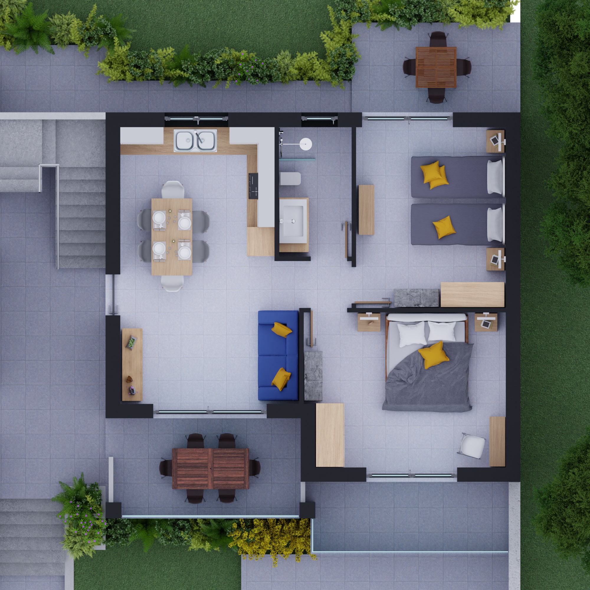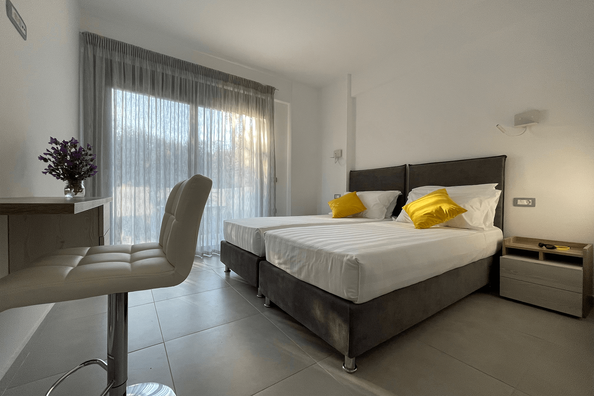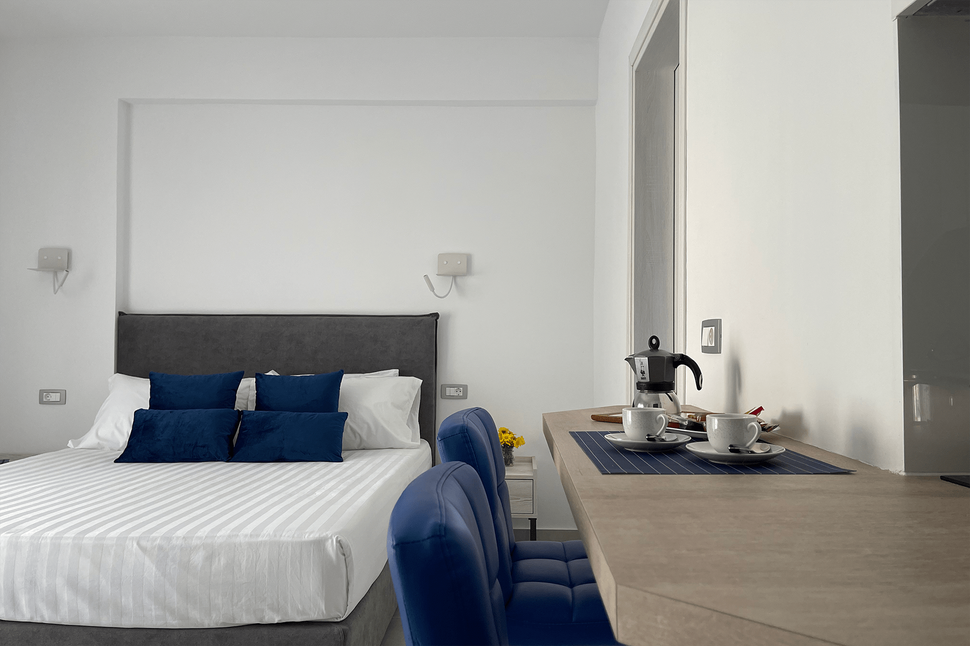 •  camera con letto matrimoniale e angolo cottura