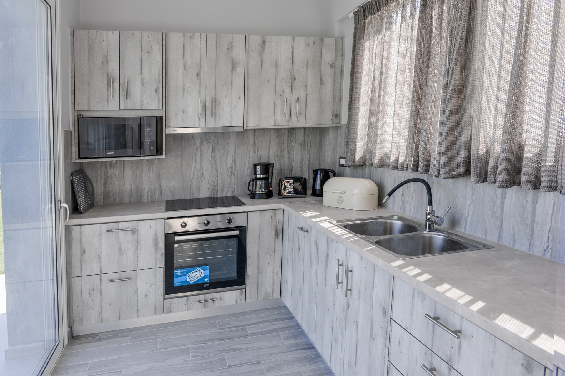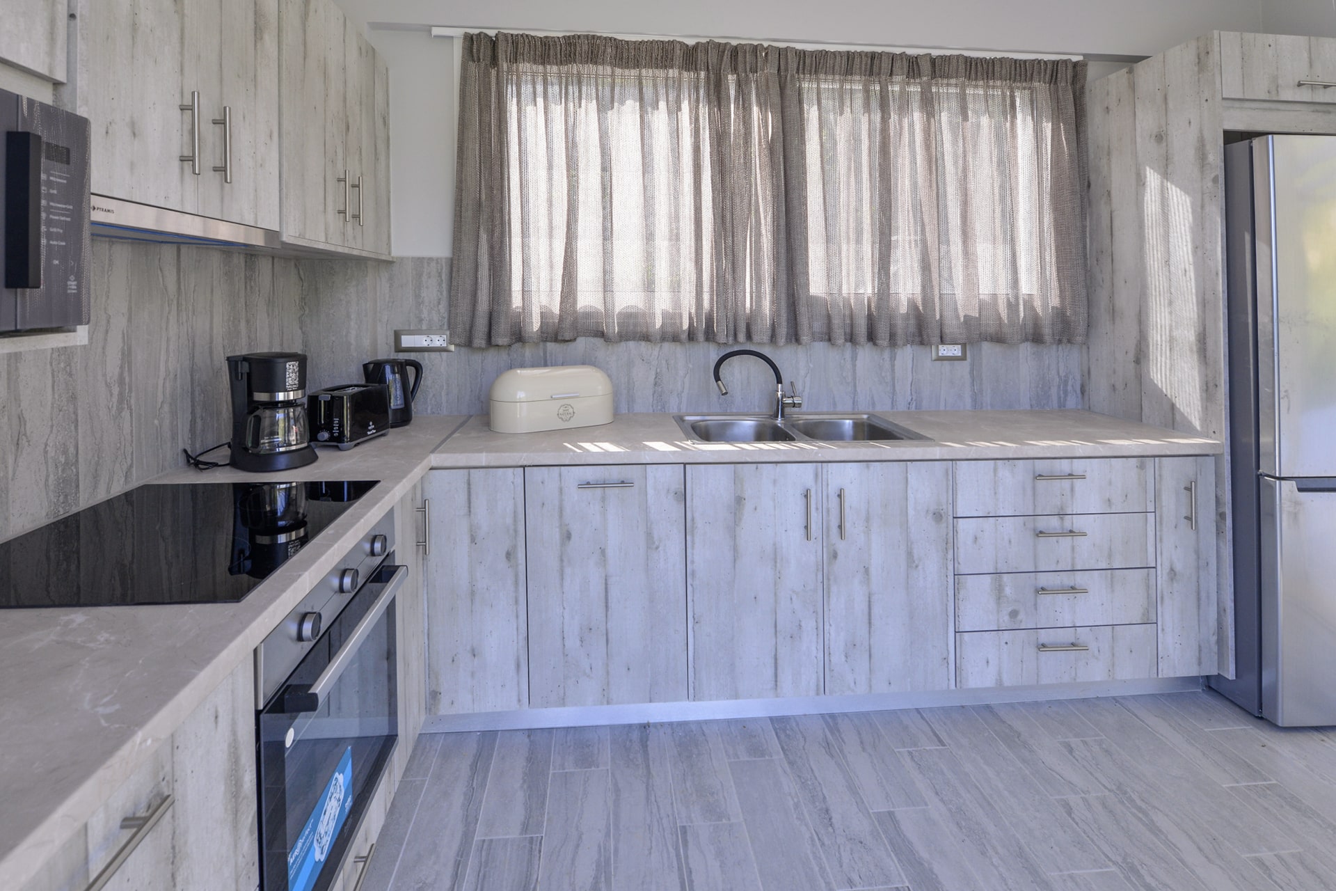 - Una cucina completamente attrezzata con forno, piano cottura, frigorifero, lavastoviglie, microonde, bollitore, macchina del caffè