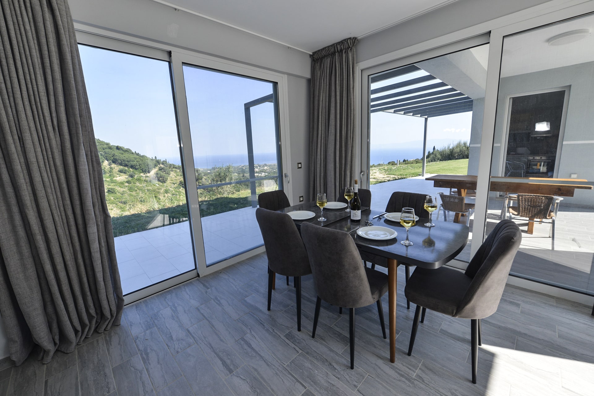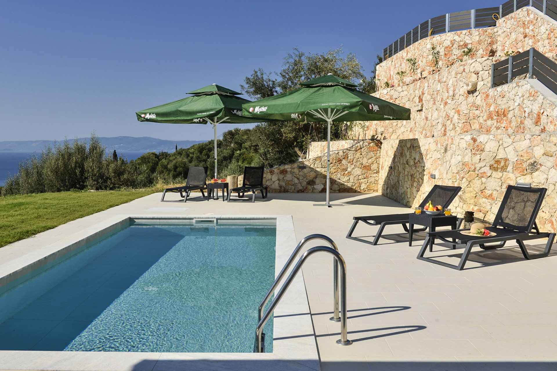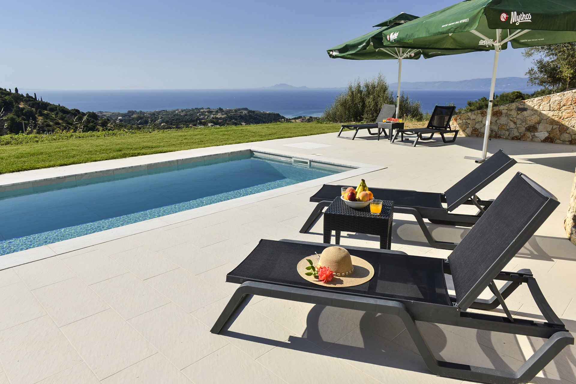 La villa sorge in una splendida posizione collinare tra i villaggi di Aleimata e Ratzakli, nella zona sud-orientale di Cefalonia. Immersa nella macchia mediterranea e circondata dal silenzio della natura, offre una vista panoramica mozzafiato sul Mar Ionio e sulla lunga spiaggia sabbiosa di Kaminia, raggiungibile in pochi minuti di auto.